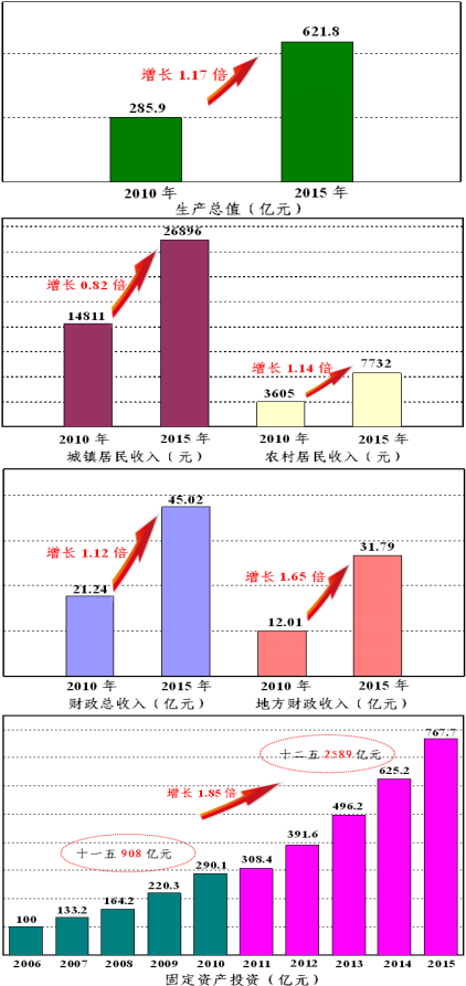 全社會固定資產(chǎn)投資五年累計達到2588.97億元,年均增長26.7%。