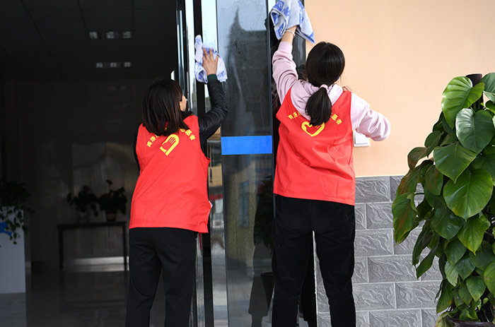 志愿者們組織有序、分工明確,有的陪同托養(yǎng)中心學(xué)員們一起繪畫、折紙,并和他們熱切交流;有的負(fù)責(zé)清掃院落和擦洗門廳,有的為殘障學(xué)員清洗頭發(fā)。志愿者們用自己的實(shí)際行動(dòng)奉獻(xiàn)自己的愛心,積極傳播正能量。