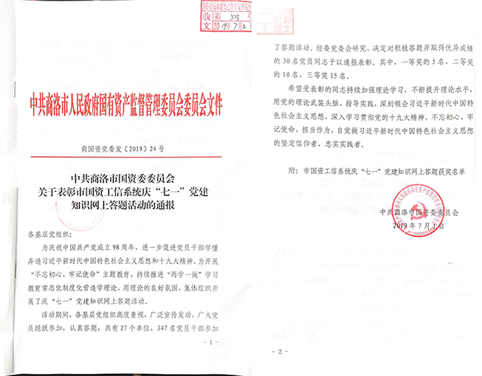 經(jīng)過(guò)認(rèn)真、激烈的網(wǎng)上比賽,公司黨支部陳波、南春鋒、郭江、樊星四名同志受到通報(bào)表彰。