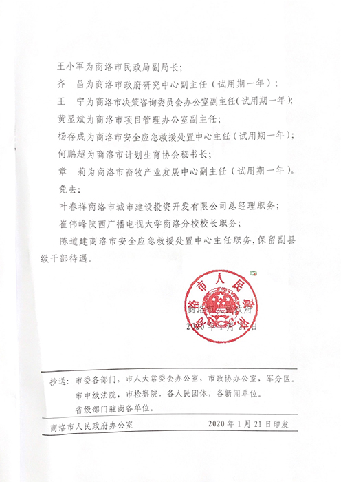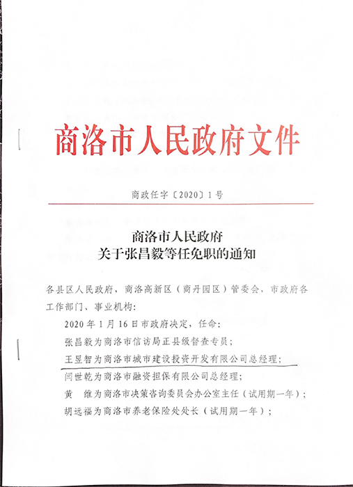 下一篇:商洛市城市建設(shè)投資開發(fā)有限公司關(guān)于李進(jìn)等四名同志任免職的通知