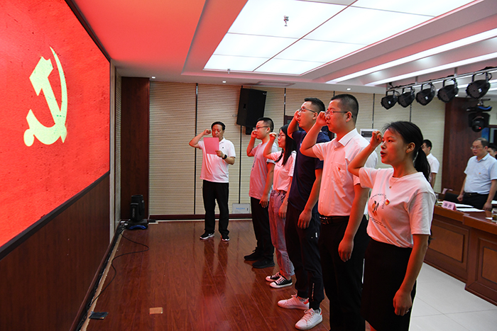 其次舉行了優(yōu)秀黨員表彰和新入黨預備黨員宣誓活動。總支組織委員南春鋒同志宣讀了市國資委黨委關于6名預備黨員的批復,總支紀檢委員、副總經(jīng)理陳波同志宣讀了黨總支關于表彰優(yōu)秀黨員的決定。在總支組織委員南春鋒同志的領誓下,6名預備黨員面對黨旗,莊嚴宣誓,之后,預備黨員代表作了大會表態(tài)發(fā)言。