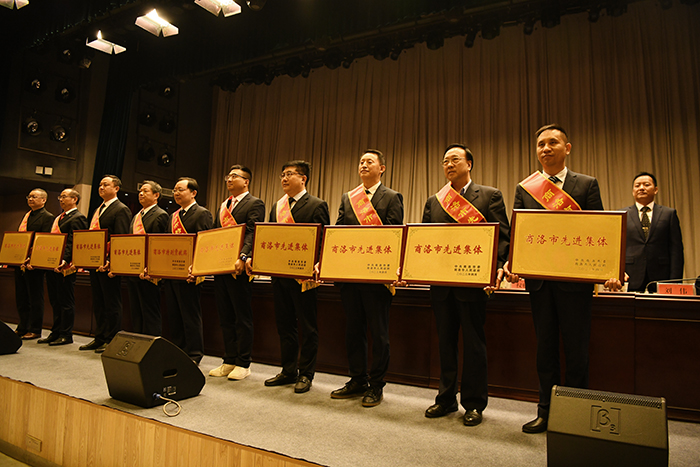 會上,公司榮獲商洛市第四屆勞動模范“先進集體”稱號,公司黨委副書記、總經(jīng)理王昱智代表公司上臺領(lǐng)受獎牌。