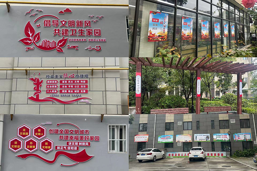 二是強(qiáng)化宣傳力度。通過(guò)業(yè)主群、小區(qū)喇叭宣傳等多種形式開(kāi)展宣傳活動(dòng),營(yíng)造“大整治、大清掃、大規(guī)范”的濃厚氛圍,讓小區(qū)業(yè)主充分認(rèn)識(shí)到抓好人居環(huán)境衛(wèi)生的重要性和緊迫性,引導(dǎo)業(yè)主樹(shù)立較強(qiáng)的環(huán)保意識(shí),形成良好的衛(wèi)生習(xí)慣。在小區(qū)設(shè)置“社會(huì)主義核心價(jià)值觀”和“精神文明建設(shè)”標(biāo)識(shí)墻,美化小區(qū)環(huán)境的同時(shí),宣揚(yáng)精神文明建設(shè),奮力實(shí)現(xiàn)物質(zhì)文明與精神文明的“比翼雙飛”。