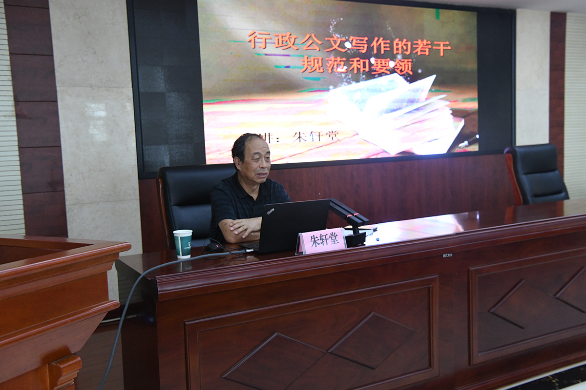 培訓(xùn)會(huì)上,朱軒堂同志以簡(jiǎn)潔的語(yǔ)言風(fēng)格、扎實(shí)的理論知識(shí)、豐富的具體案例,圍繞行政公文的基本常識(shí)、行政公文寫(xiě)作的基本要領(lǐng)、堅(jiān)定文化自信在“在兩個(gè)結(jié)合”中提高公文寫(xiě)作能力三個(gè)方面進(jìn)行了深入闡述,并結(jié)合自身多年的寫(xiě)作經(jīng)驗(yàn)和工作感觸,對(duì)公文寫(xiě)作的體例格式、謀篇布局、內(nèi)容甄選、出彩出新、規(guī)避寫(xiě)作誤區(qū)等核心知識(shí)進(jìn)行解剖式教學(xué),為全體與會(huì)人員呈現(xiàn)了一堂兼具指導(dǎo)性與針對(duì)性的精彩講座。