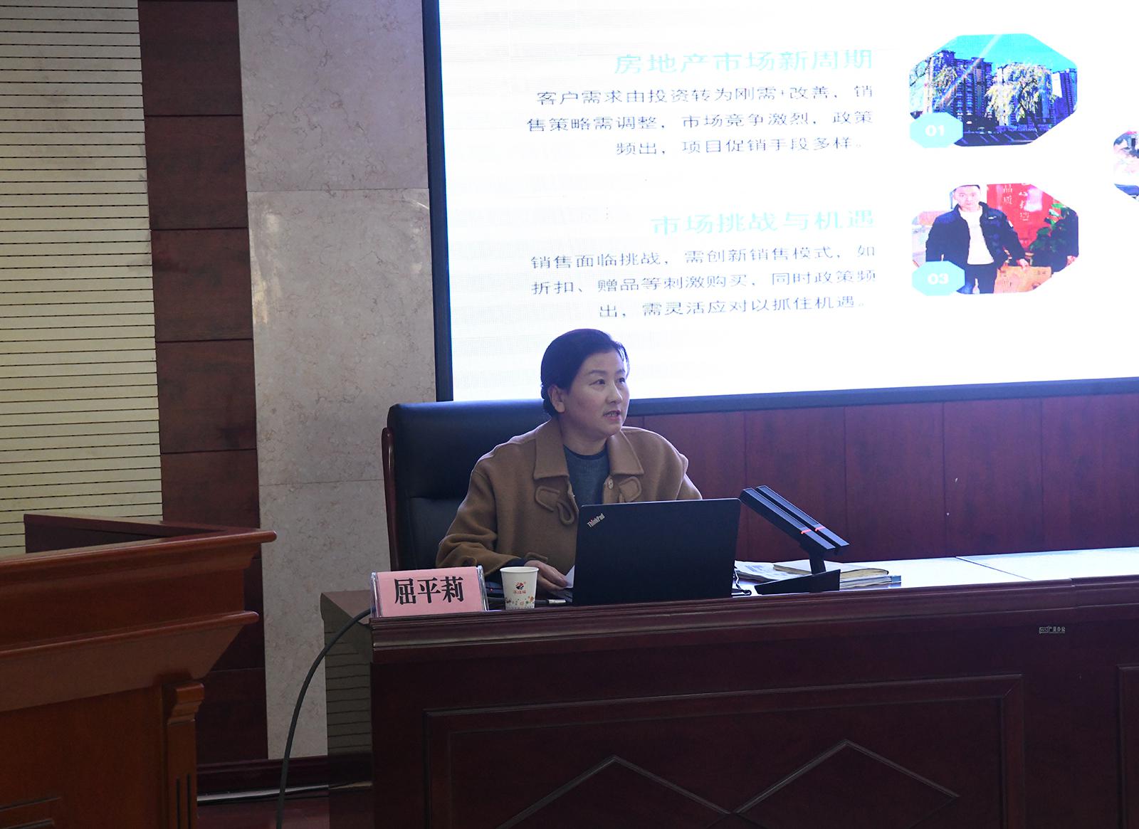 12月13日,市城投公司黨委舉辦第八期“城投大講堂”。商洛丹鶴春曉房產經紀管理有限公司經理屈平莉以“國有房企從業(yè)者如何塑造品牌營銷力”為題,結合房產經紀公司實際,生動形象地講授了房地產行業(yè)現(xiàn)狀、政策及銷售技巧,使大家有了更加全面、深刻的認識。